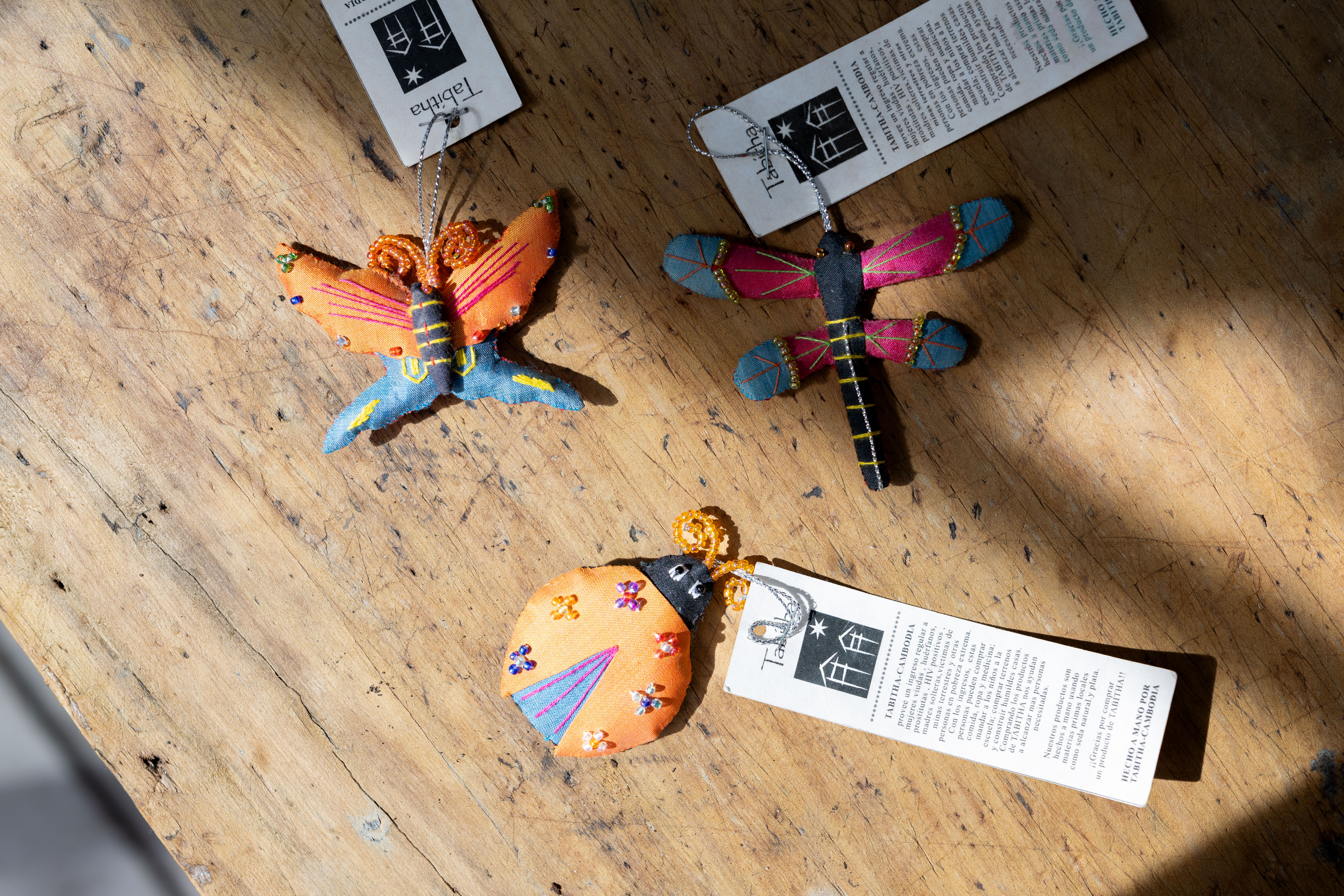 Accesorios Bordados a Mano en Cambodia. Thabita es una organización que provee trabajo para las mujeres vulnerables del país, a través de la confección de artesanías.