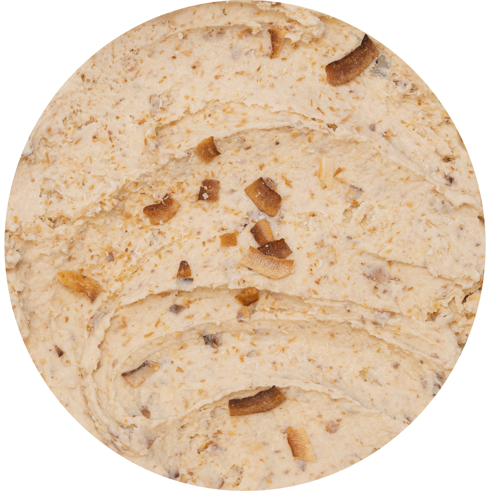 Contiene una generosa cantidad de coco rallado y en hebras tostadas, lo que intensifica su sabor y aporta textura a esta versión.